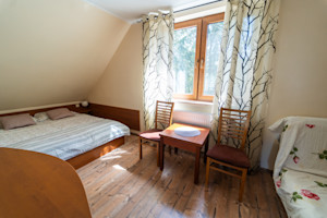 W czterech przytulnych pokojach wygodnie przenocuje do 11 osób.